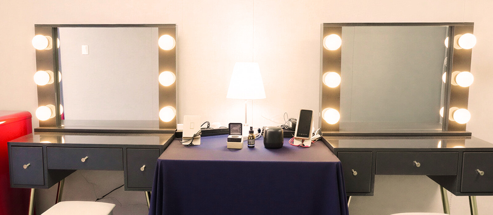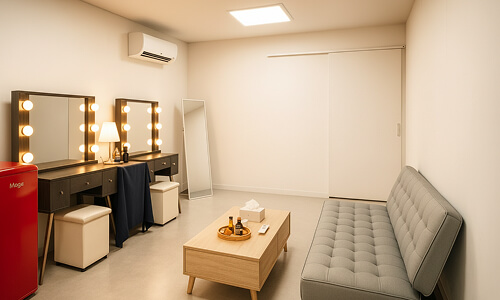 전문 조명 화장대부터 의류 관리기까지, 완벽한 스타일링을 위한 최고급 편의 시설이 준비되어 있어 아티스트의 준비 과정을 품격 있게 지원합니다.